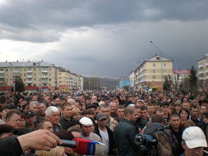 ников митинга, в основном молодёжь, не дождавшись результатов встречи с мэром, отправились блокировать железную дорогу в районе переезда