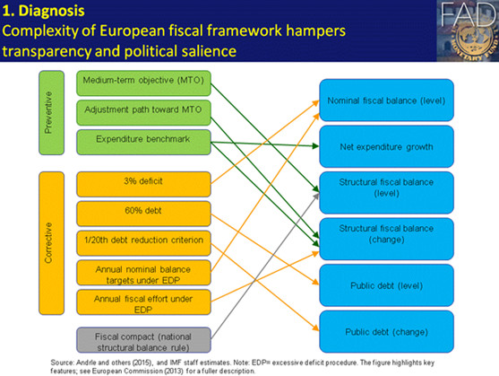 However, they also increased the complexity of the framework. The slide presents a simplified version of the current framework. It shows that the framework involves multiple rules that are overlapping, over-specified and divert attention from the ultimate objective: bringing debt to safer levels.