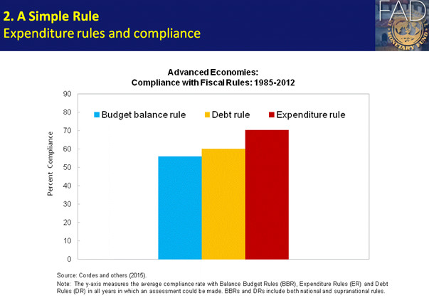 We find that expenditure rules have a better compliance record than budget balance and debt rules, as shown here.
