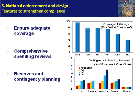 Finally, governments need to leave themselves some room for maneuver within their expenditure plans in the form of contingency reserves and contingency planning. If the regular process fails to deliver, then automatic options for spending cuts would be triggered.