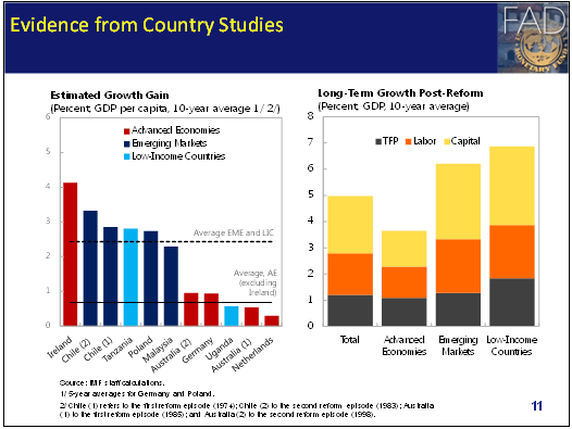 As I illustrated earlier, our estimates show that average annual growth in advanced economies might have increased by ? percent of GDP after the implementation of reforms.
