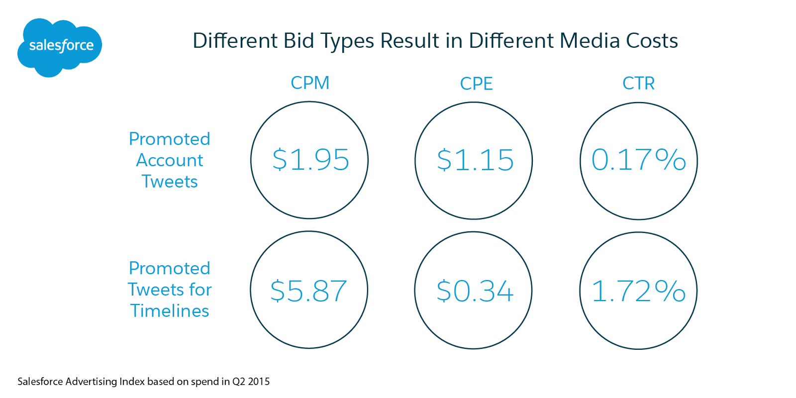 Similar to last quarter, the Twitter CPM was \\$5.87 for Promoted Timeline Tweets and a much lower \\$1.95 for Promoted Account Tweets. However, Twitter ads are entirely purchased on a cost-per-engagement basis, not on a per-impression basis, and the cost per engagement was only \\$0.34 for Promoted Timeline Tweets, with a very healthy 1.72% CTR.