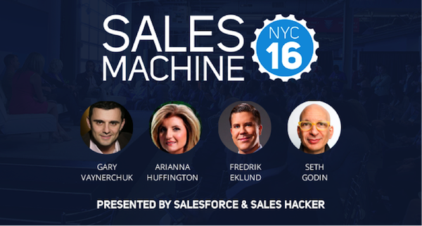 Sales Machine NYC 16 has inspirational speakers from the sales world offering insights around sales leadership, emotional intelligence, and being a self-starter. Keynote speakers include Arianna Huffington, Fredrik Eklund, Seth Godin, Gary Vaynerchuk.