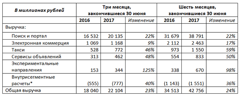 Рост прочих доходов по сравнению с аналогичным показателем за второй квартал 2016 года составил 59% и был связан в основном с ростом доходов сервиса Яндекс.Такси.